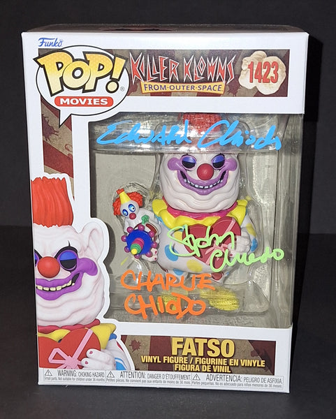 Signed by directors Charles Chiodo, Stephen Chiodo, and Edward Chiodo on a Fastso Killer Klownz from Outer Space Funko. Beckett Witness authenticated. Will come in a pop protector.