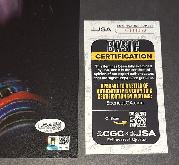 Signed in blue paint on a Child's Play photo with "Chucky" inscription. JSA authenticated. Will come with the hologram and matching card. Will come in a toploader.
