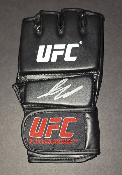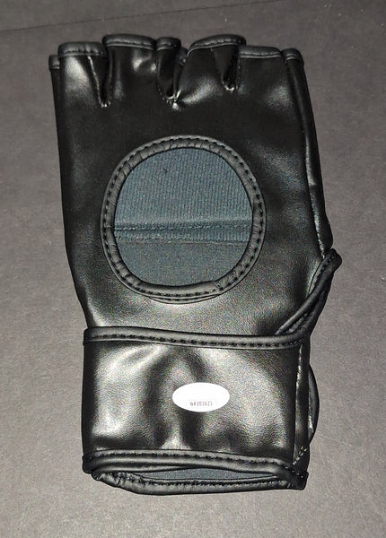 Signed in silver paint on a UFC glove. JSA authenticated. Will come with the hologram and matching card.