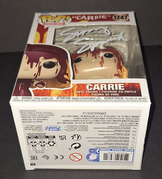 Signed in white paint on a Carrie Funko. JSA authenticated. Will come with the hologram and matching card. Will come in a pop protector.