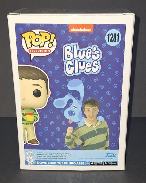 Signed in blue paint on a Steve with Handy Dandy Notebook Blue's Clues 2022 Fall Convention Limited Edition Exclusive Funko with "We just got a letter!" and Blue's paw print sketches. JSA authenticated. Will come with the hologram and matching card. Will come in a pop protector.