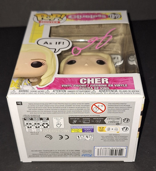 Signed in pink paint on a Clueless Cher Funko. JSA authenticated. Will come with the hologram and matching card. Will come in a pop protector.