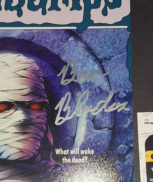 Signed in silver paint on a Goosebumps The Curse of the Mummy's Tomb photo. JSA authenticated. Will come with the hologram and matching card. Will come in a toploader.