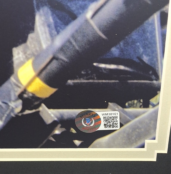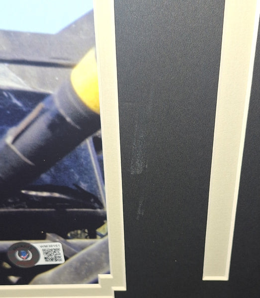 Signed in black and will come with a custom 16x20 mat. Beckett Witness authenticated. There is a small imperfection on the mat please see the last photo.