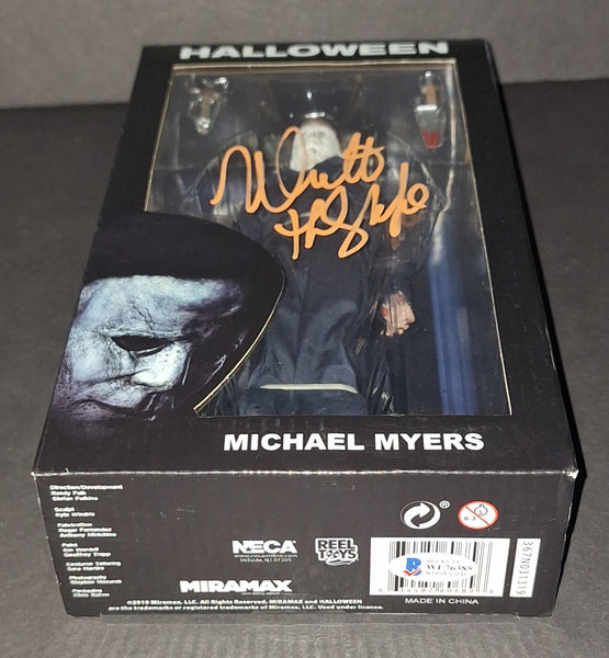 Signed in orange paint on a Halloween Michael Myers with "The Shape" inscription. Beckett authenticated. Will come in a toploader. There are some small imperfections please see the last photo.