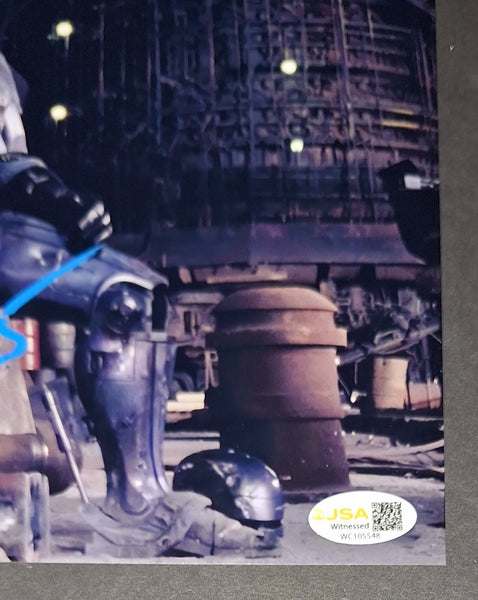 Signed in blue paint on a RoboCop photo with "6/28/25" (date signed) and "Robo" inscriptions. JSA authenticated. Will come in a toploader.