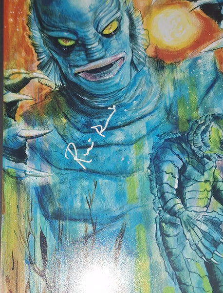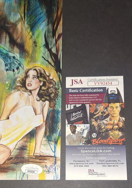 Signed in white paint on a Creature from the Black Lagoon photo. JSA authenticated. Will come with hologram and matching card. Will come in a toploader. There are some small imperfections please see the last photo.