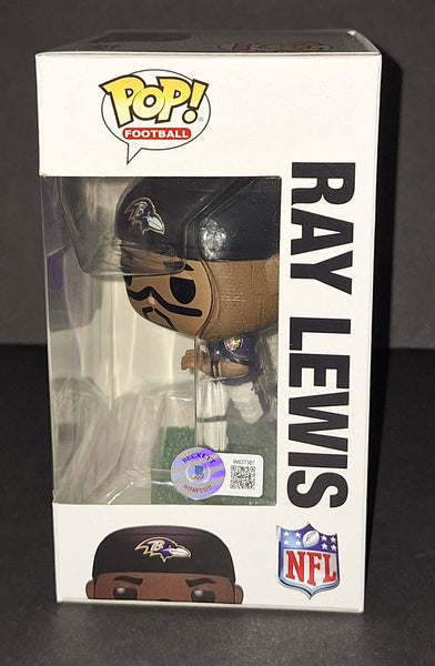 Signed in purple paint on an NFL Baltimore Ravens Funko. Beckett authenticated. Will come in a pop protector.