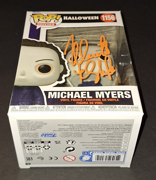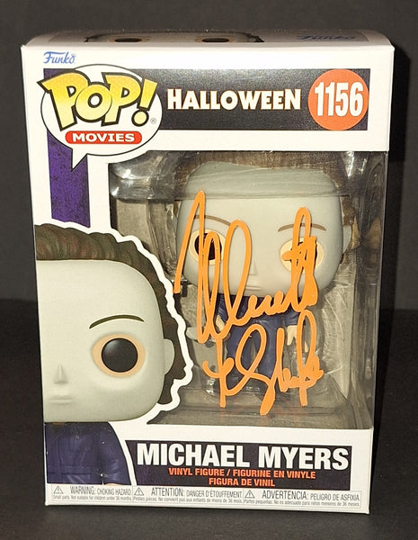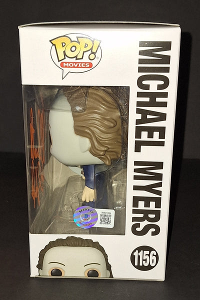 Signed in orange paint on a Michael Myers Halloween Funko with "The Shape" inscription. Beckett authenticated. Will come in a pop protector.